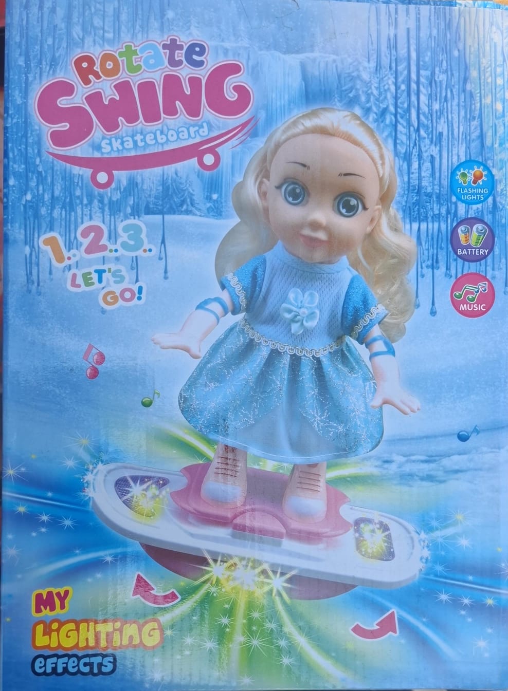 ✨ ¡Divertida y mágica! ✨ Conoce la muñeca "Rotate Swing Skateboard" ¡Una aventura llena de luces, música y movimiento!