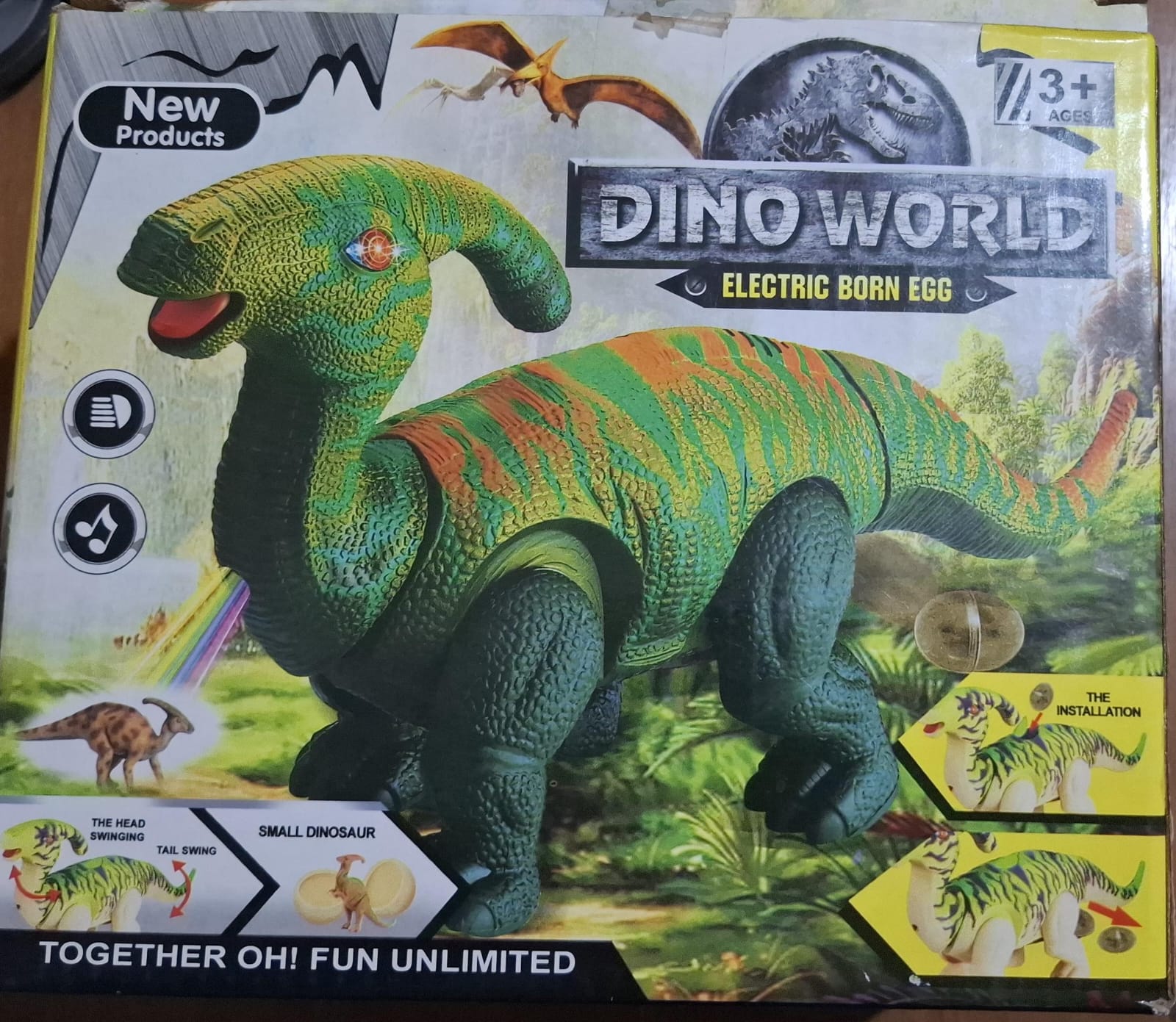 Este dinosaurio eléctrico deslumbrante con sonido y luces, ¡cobra vida frente a tus ojos! Camina, pone huevos, tiene proyector.